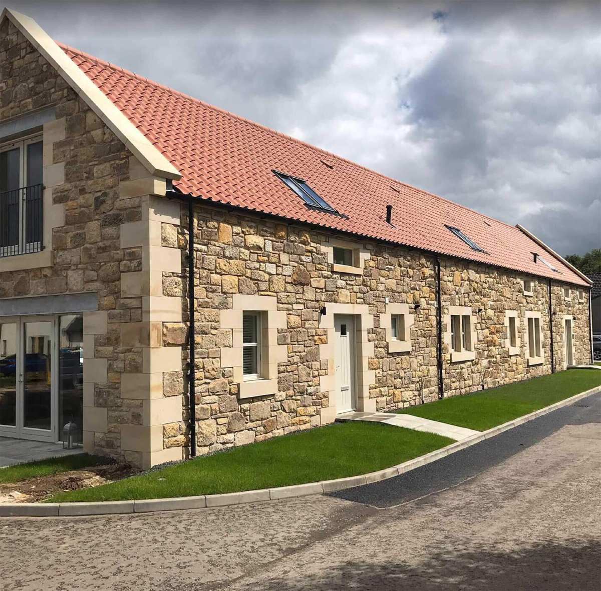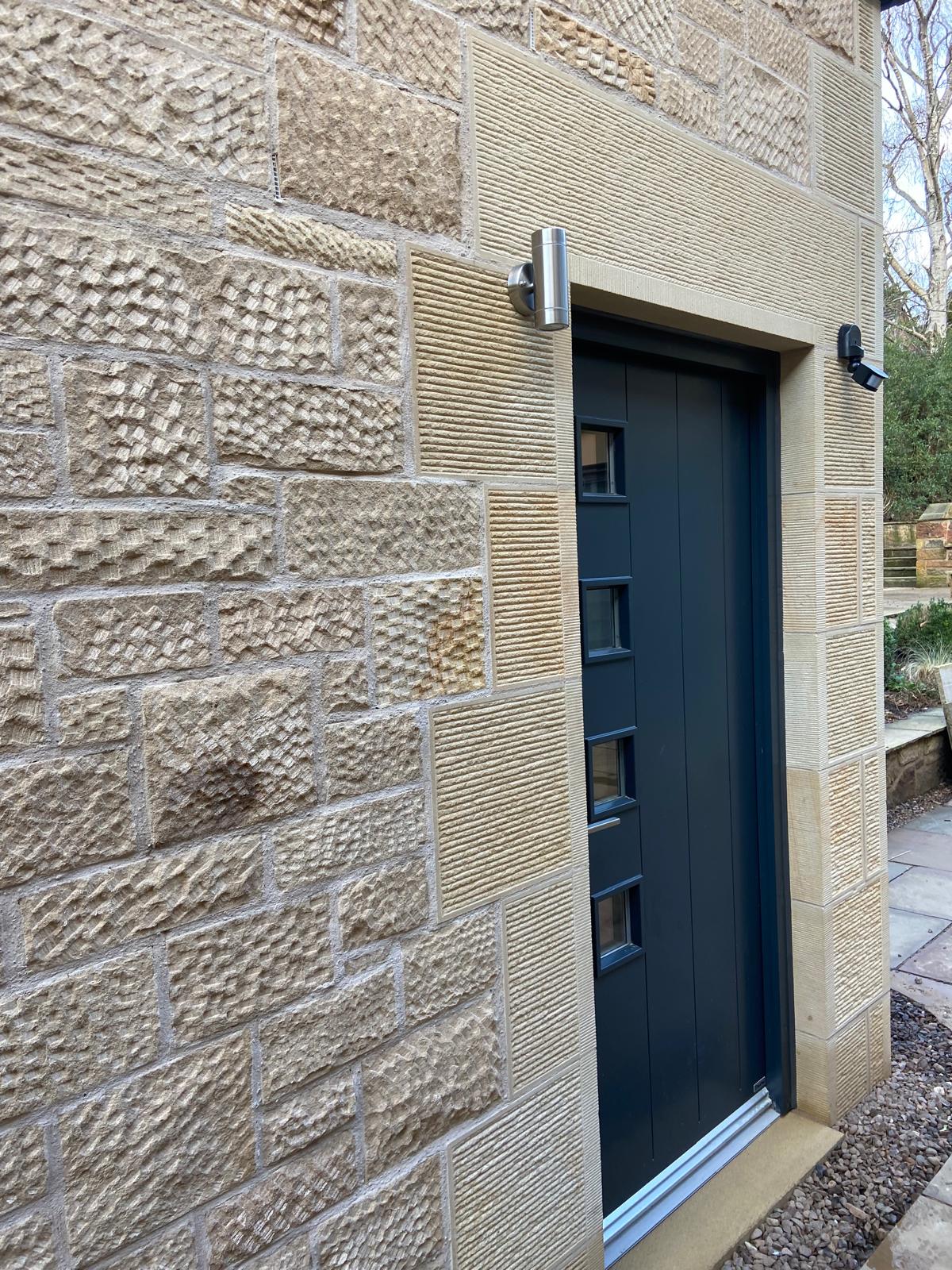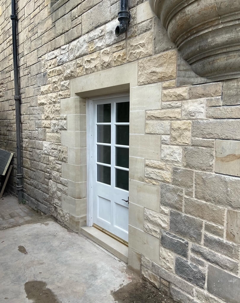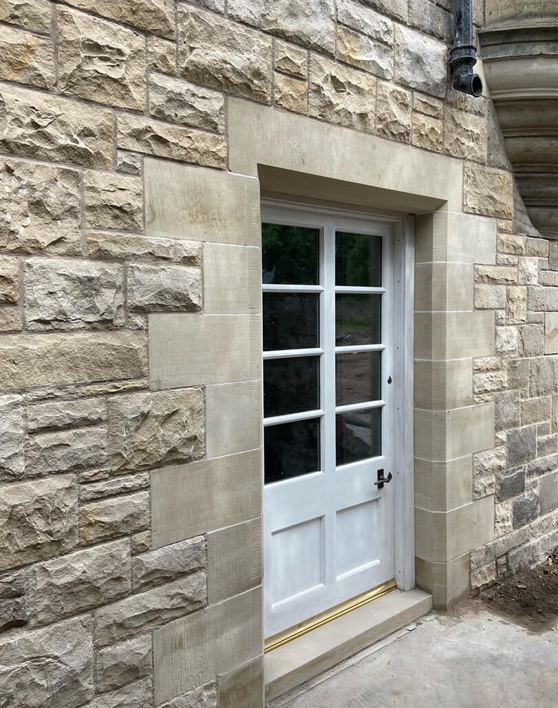 Darney sandstone was used for the window and door surrounds which were dressed and tooled on-site by our team to match the existing property.