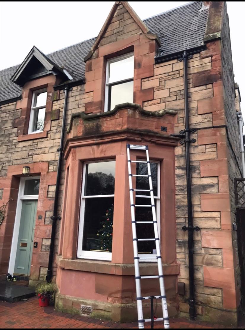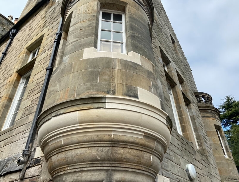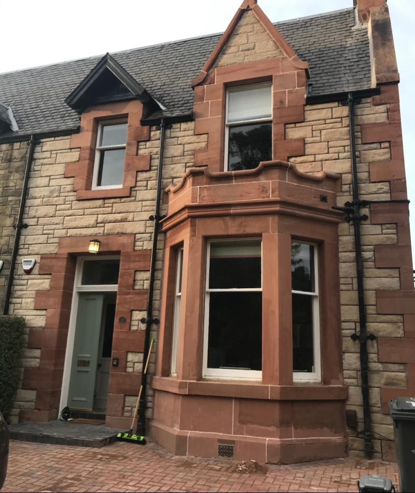 Sheed Stonemasonry carried out masonry works to this traditional property. We replaced one of the upper lintels which had split and sections of the moulded cornice on the bay window which had lost its detail using the appropriate sourced stone, corsehill sandstone.