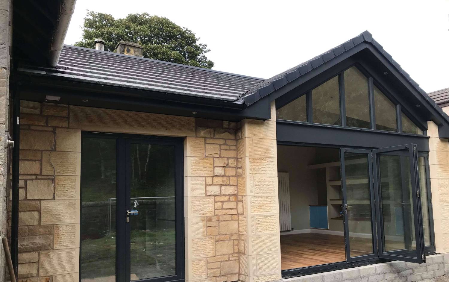 Sheed Stonemasonry worked on this new build sandstone extension with mixed buff walling and was built with a NHL lime mortar.