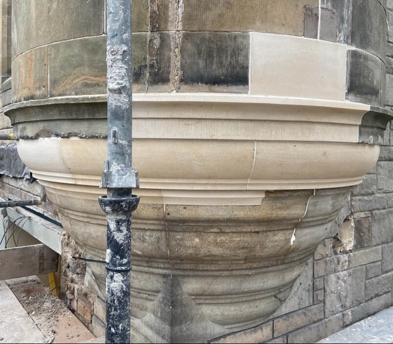 The turret was in a state of disrepair and the only option was to replace the masonry units.