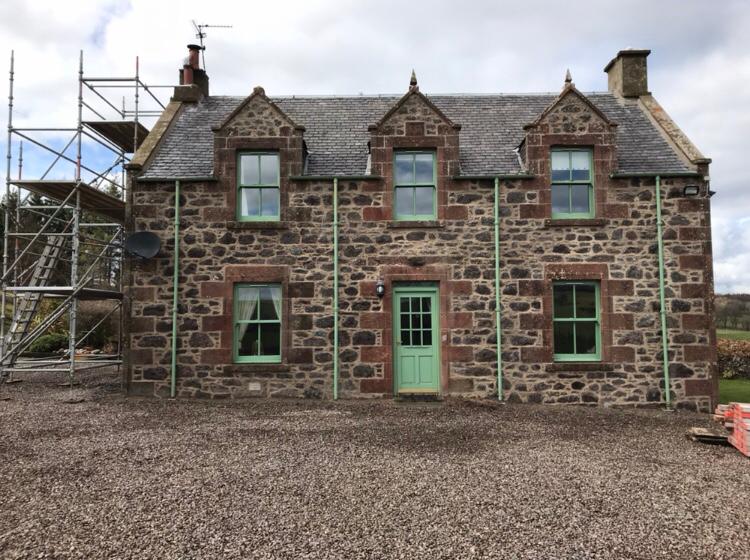 We had to hand dress all stone on-site prior to building and Darney sandstone was brought in to form all window and doorway surrounds. All building works were carried out using a NHL lime mortar.
